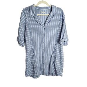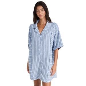 Z Supply Jayden Linen Blend Shirt Dress in Marina Blue Sz L beachy boho …