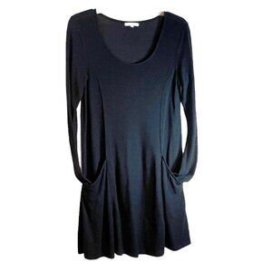 Z Supply Jersey Knit Black Swing Long Sleeve Tunic with Two Front Pockets, Size S