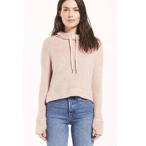 Z Supply Kacey Feather Hoodie in Mauve size small. Thumb holes in sleeves, super soft and cozy! Cropped look with slim cut on sleeves. Hooded with drawstrings. Cutest hoodie for colder weather.