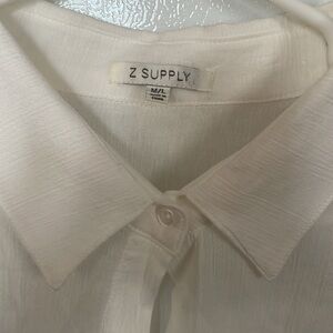 Z Supply M/L White Casual Button Down Dress Slits 100% Cotton