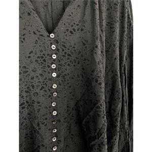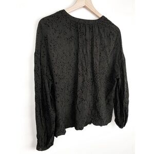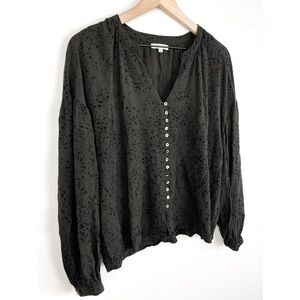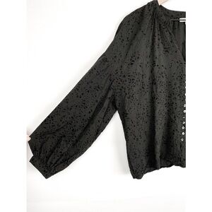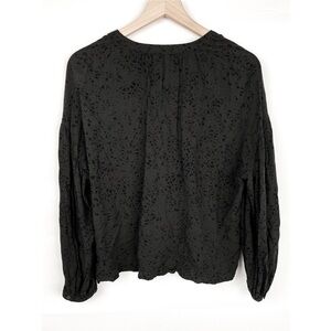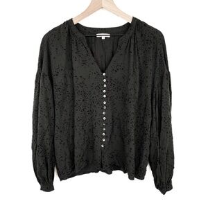 Z Supply Mazzy Stamped Button Front Balloon Sleeve Blouse Top, Black - Size M