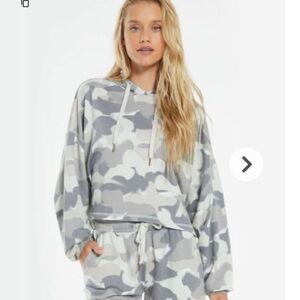Z Supply Medium Rowan Camo Hoodie Crop Camoflauge Cotton Blend Womens