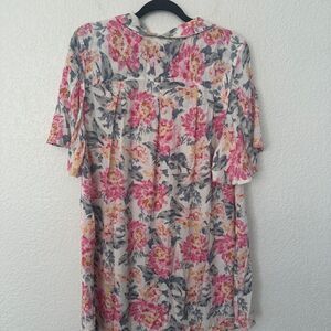 Z Supply Pink and Gray Floral Button-Down Shirt Blouse Size Small