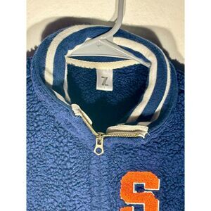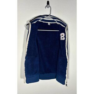 Z Supply Sherpa Fleece Vest Navy Blue S Varsity Letter S Patch Full Zip Women’s