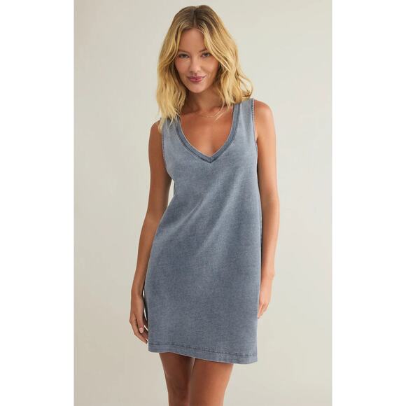 Z Supply Sloane V-Neck Jersey Denim Mini Dress - Medium Indigo NWT VARIOUS SIZES
