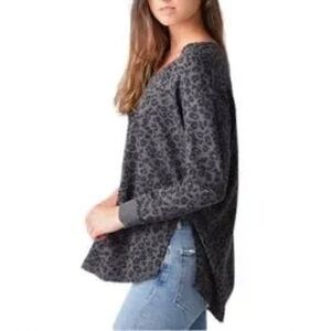 Z Supply Sweatshirt V-Neck Weekender Animal Print Top in Leo Black Medium