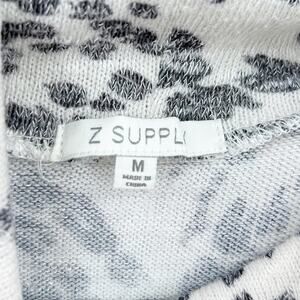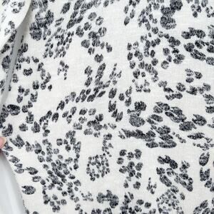 Z Supply womens sweater tunic in white and charcoal leopard print. Lightweight sweater-dress / tunic from Z Supply in a soft knit blend. Cowl / draped neckline. Long sleeves. Relaxed tunic silhouette. Allover abstract / animal-style print in white base with charcoal/grey accent. Style # ZD204860S. Size medium. Excellent used condition. No flaws detected. See measurements for proper fit.