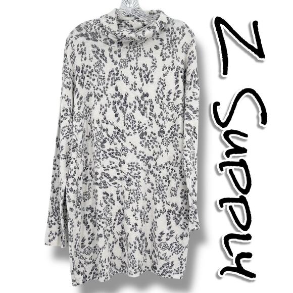 Z Supply White Charcoal Animal Print Cowl Neck Tunic Sweater Dress Womens Sz M