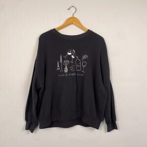 Z Supply Wine & Cheese Club Graphic Sweatshirt Black Medium