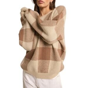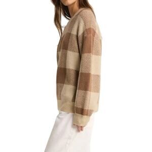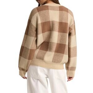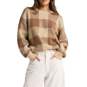 Z Supply Women Brown Plaid Soft Knit Check You Later Pullover Sweater Size M