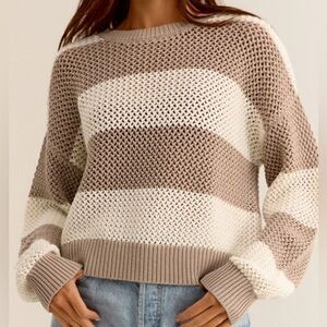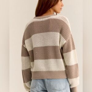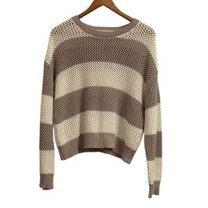 Z Supply Women’s Broadbeach Open Knit Crewneck Striped Cropped Neutral Sweater