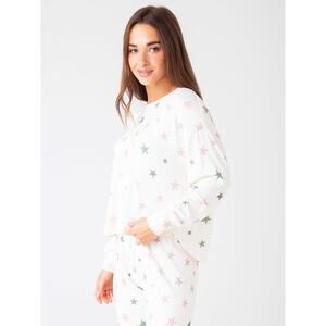 The Z Supply Women's Sun Ray Star Long Sleeve Top in size Small is a stylish and versatile addition to any wardrobe. Made from a blend of polyester and spandex, this top features a star pattern in a multicolor design. With a crew neck and long sleeves, it offers both comfort and style. Very soft.