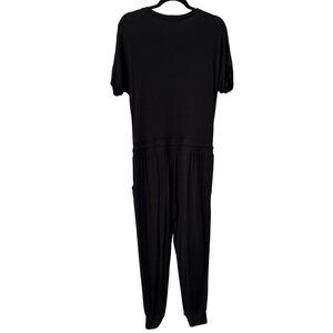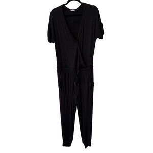 Z Supply Wrap Front Jumpsuit Size XS Jogger Style Short Sleeve Black Rayon Blend