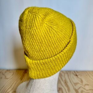 This thick and warm beanie will keep your head cozy warm and brighten up any outfit. Fixed wide cuff is tacks in place in two spots.
