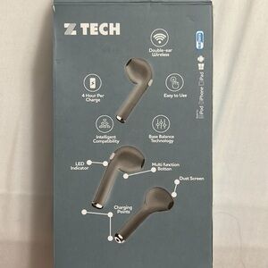 Z Tech Anti-Slip Rubbersized Wireless Earbuds W/Portable Charging Case New