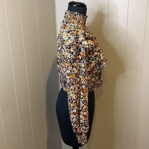 Z Zara Women’s Small Cropped Long Sleeve Elastic Turtleneck Ruffles Floral