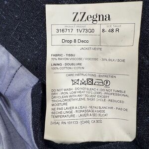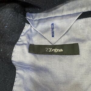 Z Zegna Blazer 48R Navy Blue Suit Jacket Rayon Cotton Silk Blend Men’s