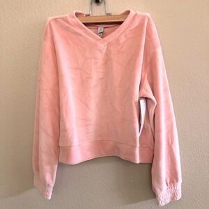 Z by Zella Girls Powder Pink Soft Velour Pullover Cropped Sweatshirt Size M/8-10