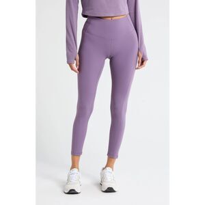 Sculpted flatlock seams define these lavender/purple athletic leggings crafted with moisture-wicking fabric for a dry, distraction-free workout. The feedback suggests that these leggings run small.