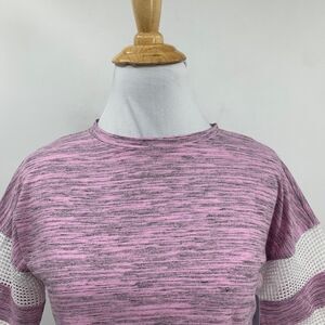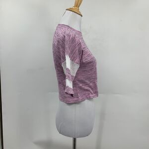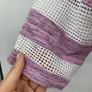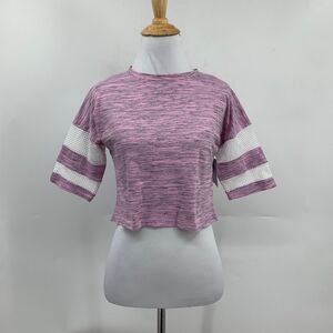 Z by Zella Top Womens XS Extra Small Lilac Gray Mesh Panel Jersey Stripe Cropped