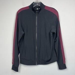 Z by Zella Womens Track Bomber Lightweight Full Zip Jacket Black Burgundy XS
