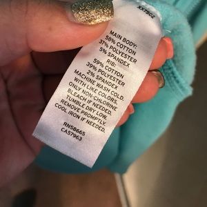 New without tags - never been worn or washed. No flaws or stains or rips. True to size, size Medium. Really pretty teal color. See pictures for material description.