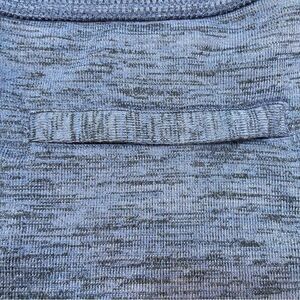 Heather blue with coordinating blue spandex shorts underneath