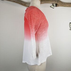 Coral orange and white ombre dipped sweater with keyhole back