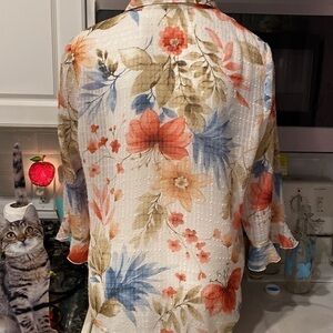 Z womens Alfred Dunner floral sheer 3/4 tulip sleeve button up top size 14