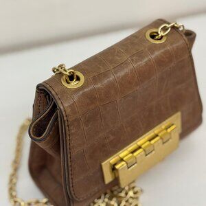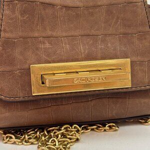 ZAC POSEN Embossed Leather Bag with detachable chain. it comes with the dust bag. it has some wear in the hardware. Please see pictures for more details. It fits a iPhone 15