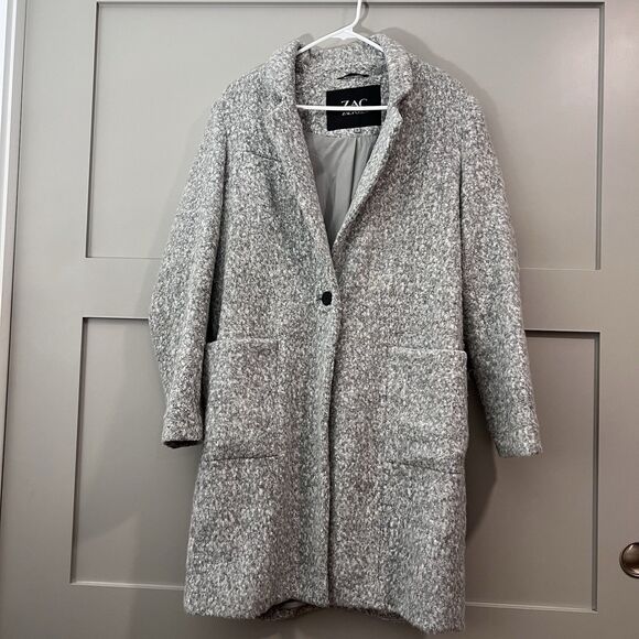ZAC Posen Bouclé Wool Blend Coat Women Gray Size 10 Longline Textured Jacket