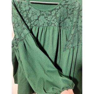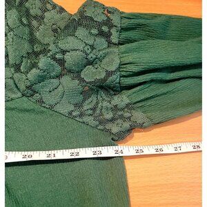 ZAC & RACHEL Blouse 2X Lace Gauze Bell Sleeve Boho Green Peasant Floral Casual