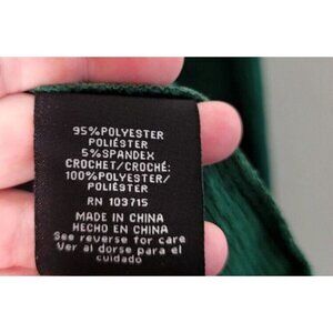 Style: green long sleeve blouse with floral embroidery. 95% Polyester 5% Spandex. Crochet: 100% Polyester