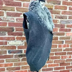 ZAC & RACHEL Gray Soft Faux Fur Collar Knit Sweater Vest Size S