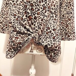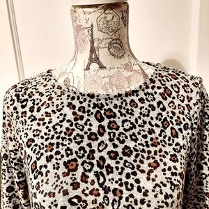 GRAU, BLACK & BROWN LEOPARD PRINT KNIT PULLOVER TOP.