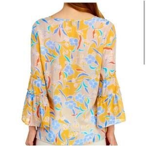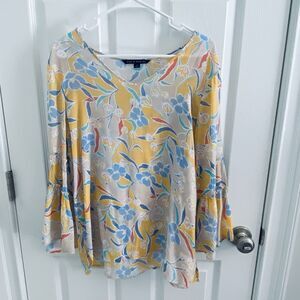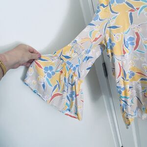 ZAC & RACHEL Top Womens Size M Floral Bell Sleeve Gauzy Blouse Tunic Boho Pastel