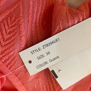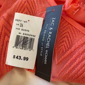 ZAC & RACHEL Woman Art Deco Top Size 3X Plus Guava Pink Sheer Flowy NWT- Defect