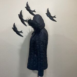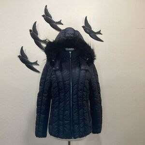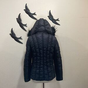 ZAC Zac Posen Black Olivia Down Puffer Jacket Removeable Faux Fur Trim Hood - L