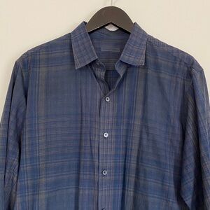 Plaid Shirt adds everyday versatility to a handsome spread-collar sport shirt tailored in a comfortable fit from crisp, breathable cotton. True to size. Considered a Regular fit; cut with a little extra room through the chest and body for comfort. - Regular fit - Spread collar - Mitered two-button cuffs - Front button closure - Plaid pattern - Curved shirttails - Imported