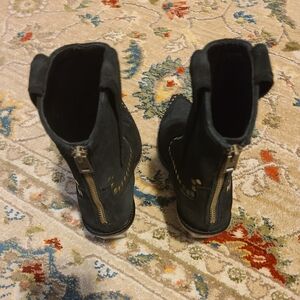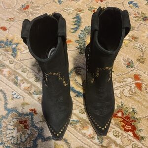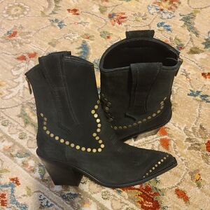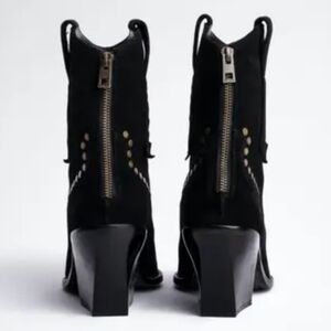 These mid-height western ankle boots have a heel, rivets and a zip closure on the back in a lovely suede.