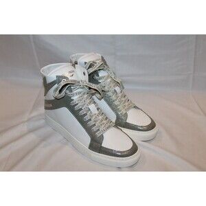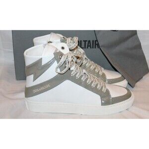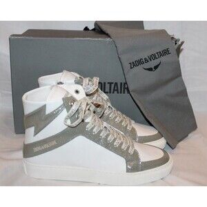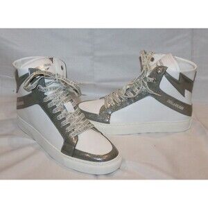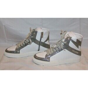 ZADIG AND VOLTAIRE High Top Flash Gun Silver White Lace Up Zip Sneakers EU 40 US