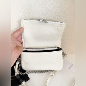 Edgy vibes with a chunky chain strap. Also has a leather crossbody strap. Mini bag for going out. Lots of room for a mini bag. New with dust bag. Questions? Leave a comment below!