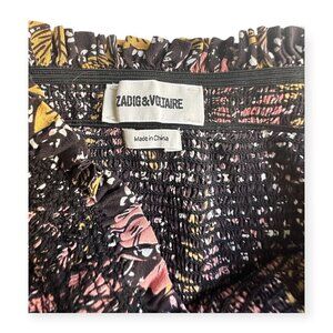 ZADIG & VOLTAIRE Jessy Smocked Floral Silk Mini Skirt, Noir, Size 34 EU (XS)