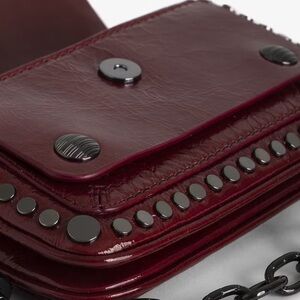 Mini bag in glossy leather with crinkled effect with ring, chain and studded details.