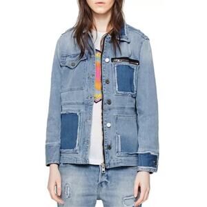 ZADIG & VOLTAIRE Kick Destroy Zip Jacket Jacket Patchwork Pockets Womens Size M
