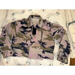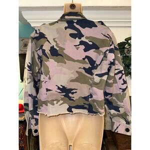 GORGEOUS ZADIG & VOLTAIRE CAMO JACKET IN UNIQUE TONES OF MAUVE, PURPLE, NAVY AND OLIVE. COTTON UTILITY STYLE JACKET WITH CROPPED LENGTH. NO SIZE LABEL BUT MEASUREMENTS ARE IN PHOTOS AND I WOULD SAY IT IS A SMALL-MEDIUM.