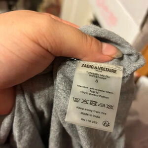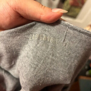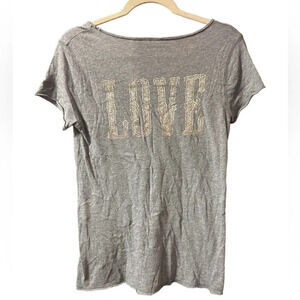 Pre owned excellent condition gray vneck tee with gold glitter love on back. WOMENS size small.