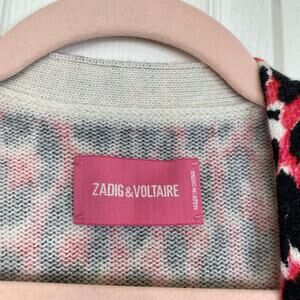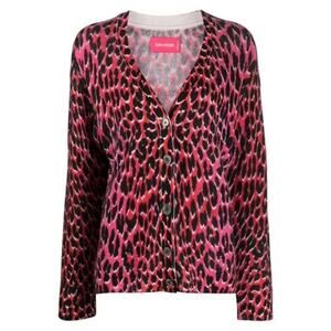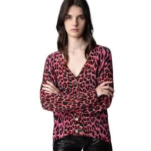 ZADIG & VOLTAIRE Mirka Cashmere Leopard Print Cardigan Size Medium Pink Animal