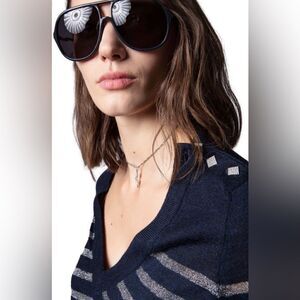 ZADIG & VOLTAIRE Missia Wo Stripes Lurex Wool-blend Sweater Sz M. NWT