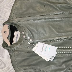 ZADIG & VOLTAIRE NWT OLIVE REAL LEATHER ASYMMETRIC ZIP MOTO JACKET